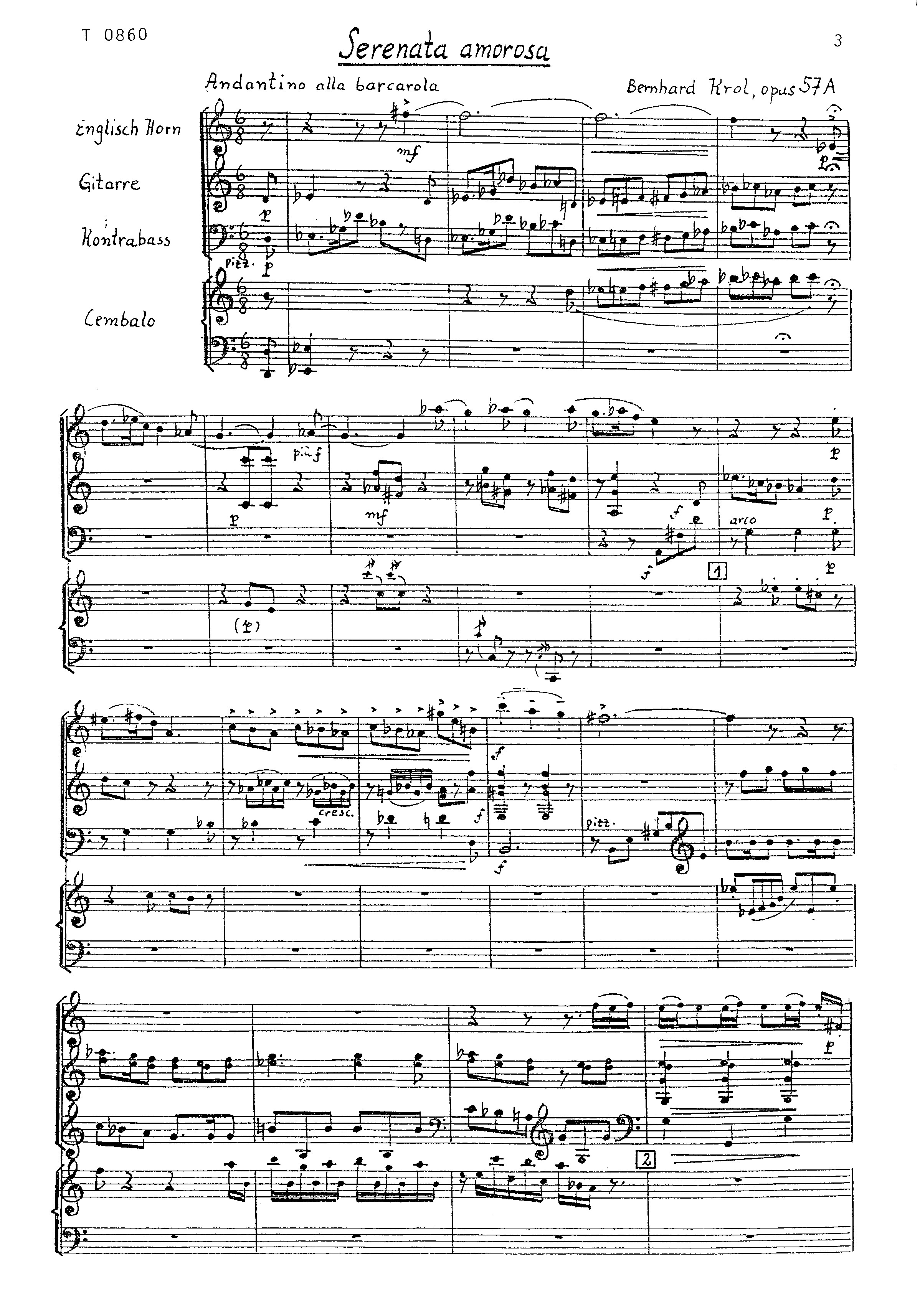Partitur, Englisch-Horn, Gitarre und Kontrabass